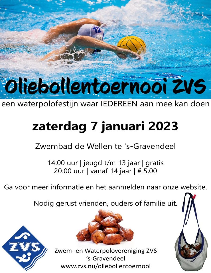 'S-GRAVENDEEL – Zaterdag 7 januari 2023 wordt voor de 17e keer ons Oliebollentoernooi georganiseerd. Een waterpolofestijn waar IEDEREEN aan mee kan doen. Dit geldt voor zowel leden als niet-leden, (oud-)zwemmers en (oud-)waterpoloërs maar ook vrienden en familieleden.Om iedereen kennis te laten maken met onze vereniging en de sport zijn familie en vrienden van harte welkom. Daag collega’s eens uit om nu eindelijk een balletje mee te komen gooien zodat ze zelf kunnen ervaren hoe het is. Men hoeft geen ervaring te hebben of expert te zijn om deel te nemen. Het evenement wordt gehouden in Zwembad de Wellen te ’s-Gravendeel.