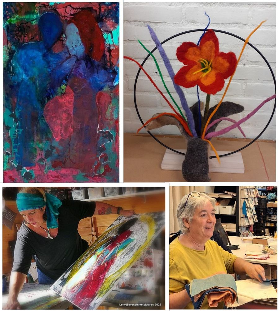 Heleen schildert al jaren met plezier en wordt geïnspireerd door het kijken naar kunst in musea. Petra Kleinendorst heeft zowel de liefde voor textiele handwerken als de Hoekschewaardse natuur van jongs af aan meegekregen.