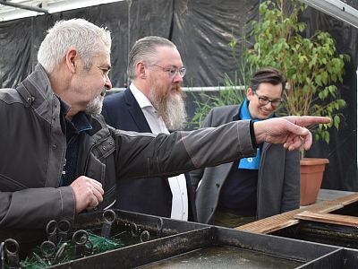 2e kamerlid Pieter Grinwis én wethouder Huibert Steen van de gemeente Hoeksche waard zijn afgelopen zaterdag rondgeleid door de enthousiaste leerlingen Swen Mulder en Rik in ’t Veld, waarbij aanvullende toelichting is gegeven door de docenten (Sjaak van den Bos en Arnoud van der Eerden) en locatieleider (Miranda te Boome) van Yuverta en de betrokken externe partijen Kwekersgilde (Patrick Asmawidjaja) en Cirkellab (Jeroen Put). Het enthousiasme kwam zeker over en zowel wethouder als 2e kamerlid werden ter plekke ‘ambassadeur’.