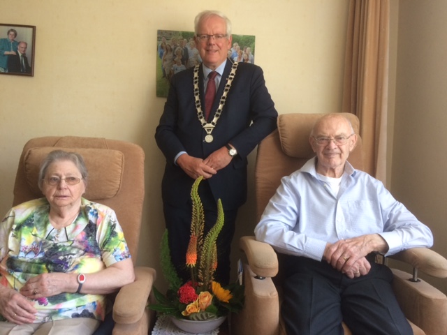 NUMANSDORP - Zondag 23 juni was het exact 70 jaar geleden dat de inmiddels 91-jarige meneer Knoot en zijn 88-jarige echtgenote mevrouw Knoot-van der Ree elkaar het jawoord gaven. Om stil te staan bij deze bijzondere mijlpaal, bezocht burgemeester Govert Veldhuijzen het jubilerende echtpaar en bracht namens het gemeentebestuur de felicitaties over.