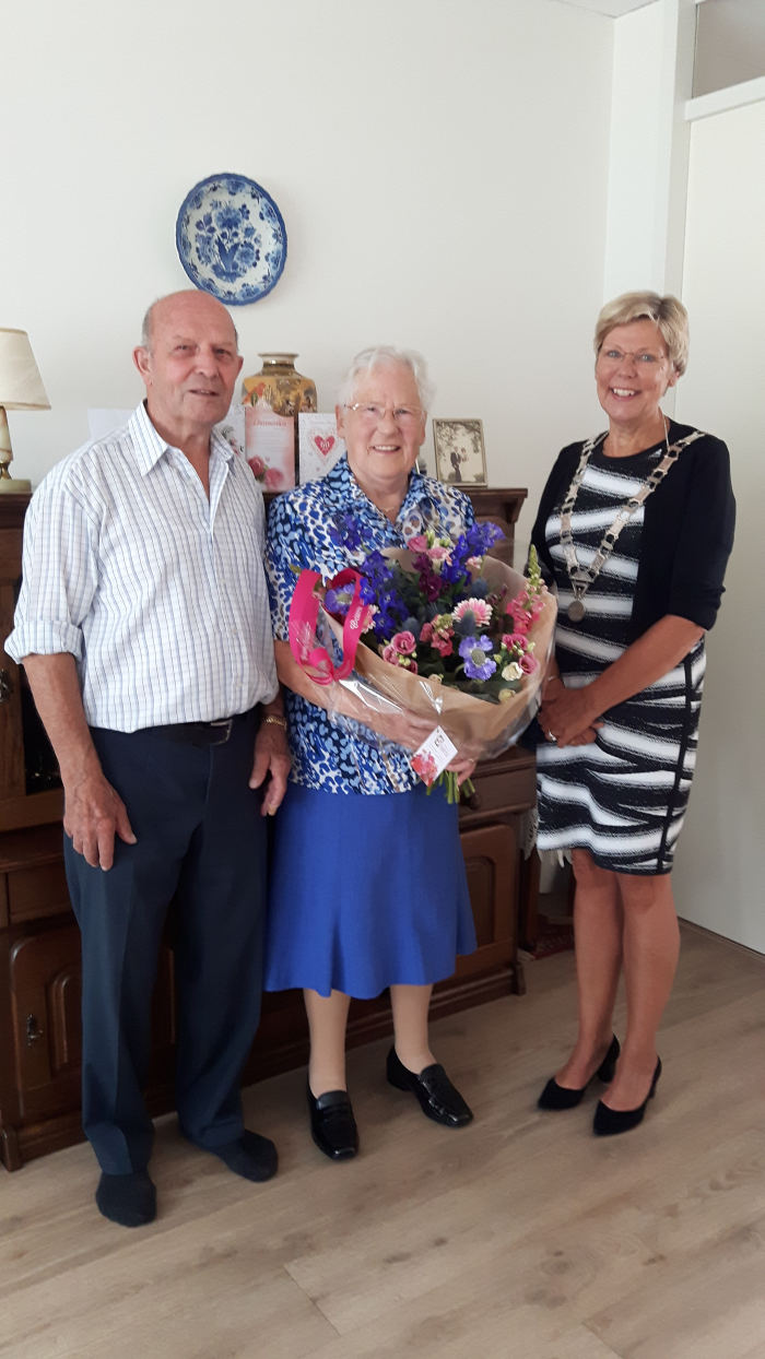 STRIJEN - Gisteren, 6 augustus was het exact 60 jaar geleden dat de inmiddels 82-jarige meneer Verhoef (Bas) en zijn 81-jarige echtgenote mevrouw Verhoef (Bets) elkaar het ja-woord gaven. Om het jubilerende echtpaar te feliciteren namens het gemeentebestuur, ging locoburgemeester Joanne Blaak op de koffie. Meneer en mevrouw Verhoef kennen elkaar al van jongs af aan. Mevrouw is geboren en getogen in Strijen en meneer is geboren in Mookhoek. Ze hebben elkaar leren kennen in de Kerkstraat van Strijen. Ze hebben twee zonen waarvan er 1 helaas is overleden.