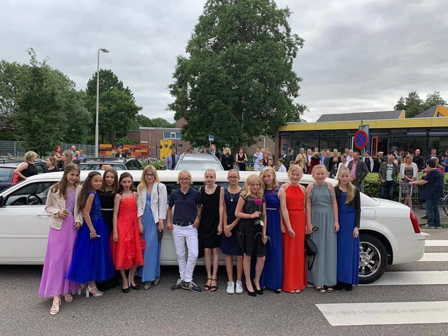 'S-GRAVENDEEL - Met een spetterend Groep 8-Gala namen de achtstegroepers van IKC De Schelf afscheid van hun basisschool. De ouders zorgden voor passend vervoer, het personeel en de ouderraad voor een feestelijk programma. Iedere leerling stond nog één keer in het zonnetje en kon op die manier afscheid nemen van de basisschool. Met een lach en een traan kunnen de kinderen zich opmaken voor de middelbare.