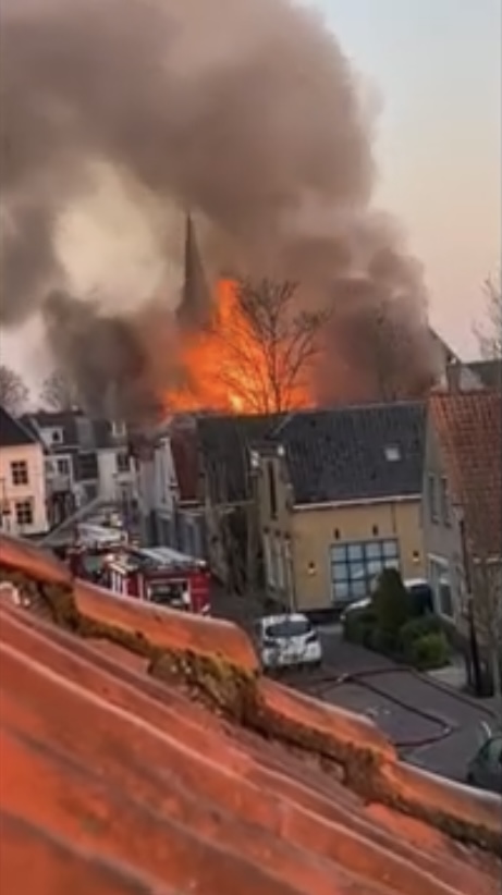 De brandweer is lang bezig geweest met nabluswerkzaamheden. De woning en de Tweedehands winkel moeten als verloren worden beschouwd.