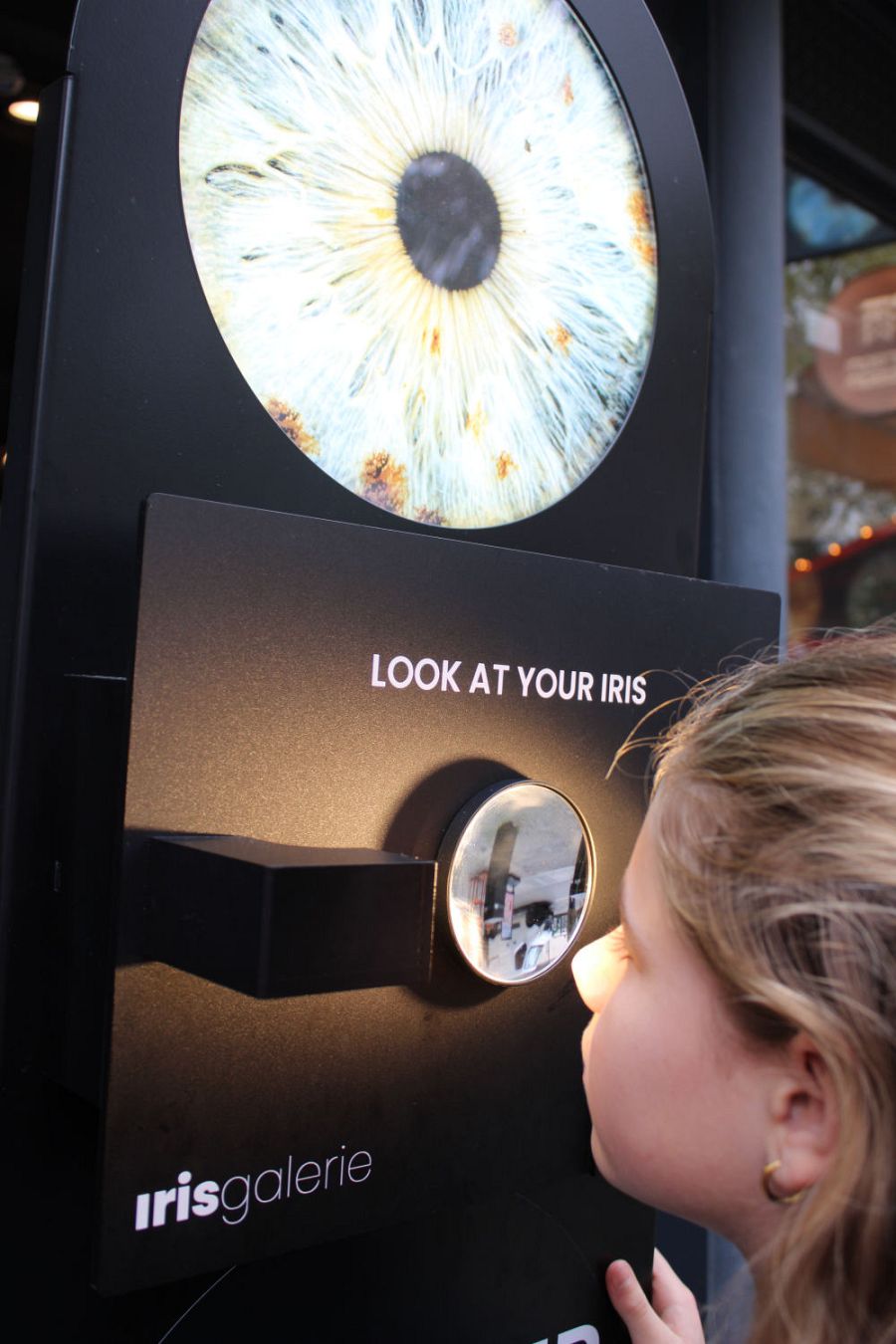 Als ze bij de IrisArtworkPhotoshop haar eigen oog bekijkt, komt het kleine meisje weer tevoorschijn. ‘Wat prachtig! Ik wist niet dat irissen zo mooi zijn!’, roept zij enthousiast. ‘Opa, kijk eens! Oma Leni jij ook!’