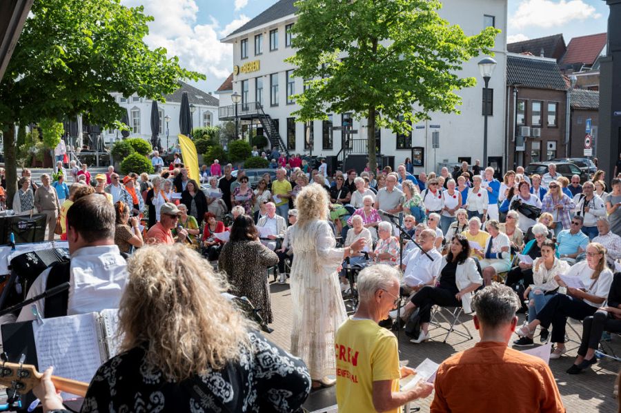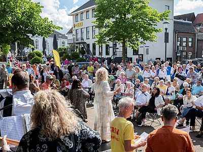OUD-BEIJERLAND - Alle 28 koren die het Korenfestival Hoeksche Waard rijk was, hebben afgelopen zaterdag kunnen zingen in een zonovergoten Oud-Beijerland. Boven verwachting was het weer perfect voor een korenfestival. Op alle locaties in het centrum van het dorp zaten de terrassen vol en was de sfeer buitengewoon.
