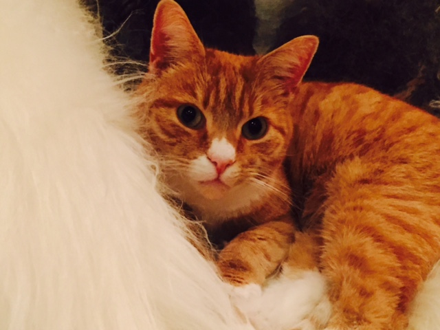 Sinds zijn komst heb ik mij strategisch teruggetrokken op de eerste verdieping. Zijn belachelijke korte pootjes en meterslange rug zijn niet geschikt om een trap te beklimmen, dus ik zit daar veilig. Zeg nou zelf: geen enkele kater met ook maar een greintje zelfrespect, gaat graag staartloos door het leven. Toch?!