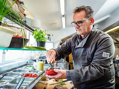 Fons is sinds een jaar de nieuwe eigenaar van restaurant De Batterij. Hij geniet ervan om een frisse wind te laten waaien en heeft ook de website en de menukaart vernieuwd.