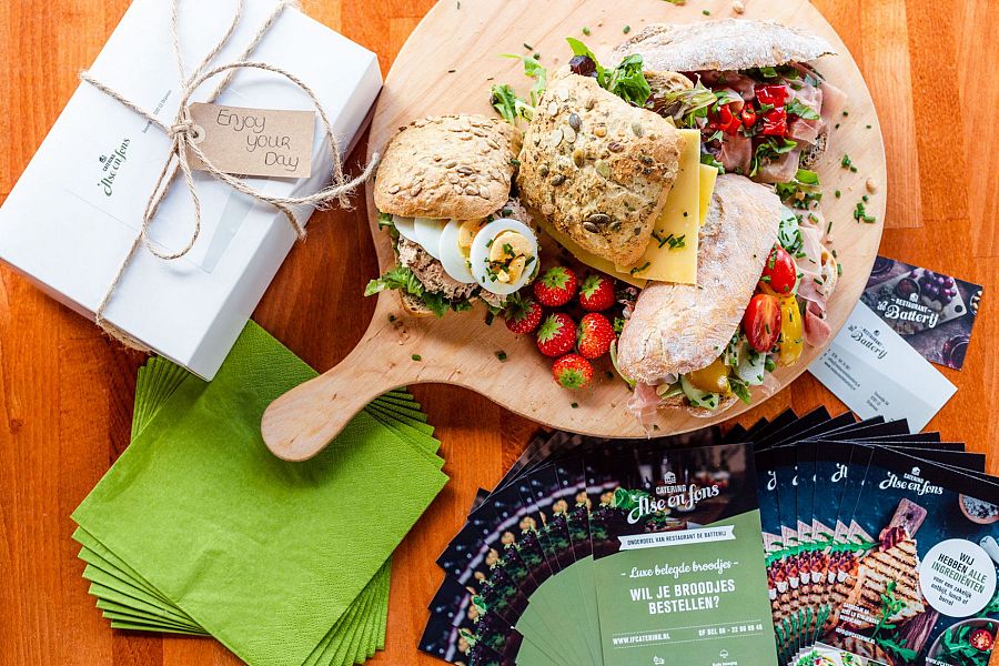 Fons en Ilse kiezen bewust voor een cateringconcept waarin ingezet wordt op verrassend zijn. Zo nemen ze geen genoegen met het reguliere brood of de standaard salade. De vier soorten brood die ze exclusief gebruiken voor hun catering, komen uit België en alles wordt royaal belegd. Door steeds te variëren blijven de broodjes een aangenaam moment om naar uit te kijken.
