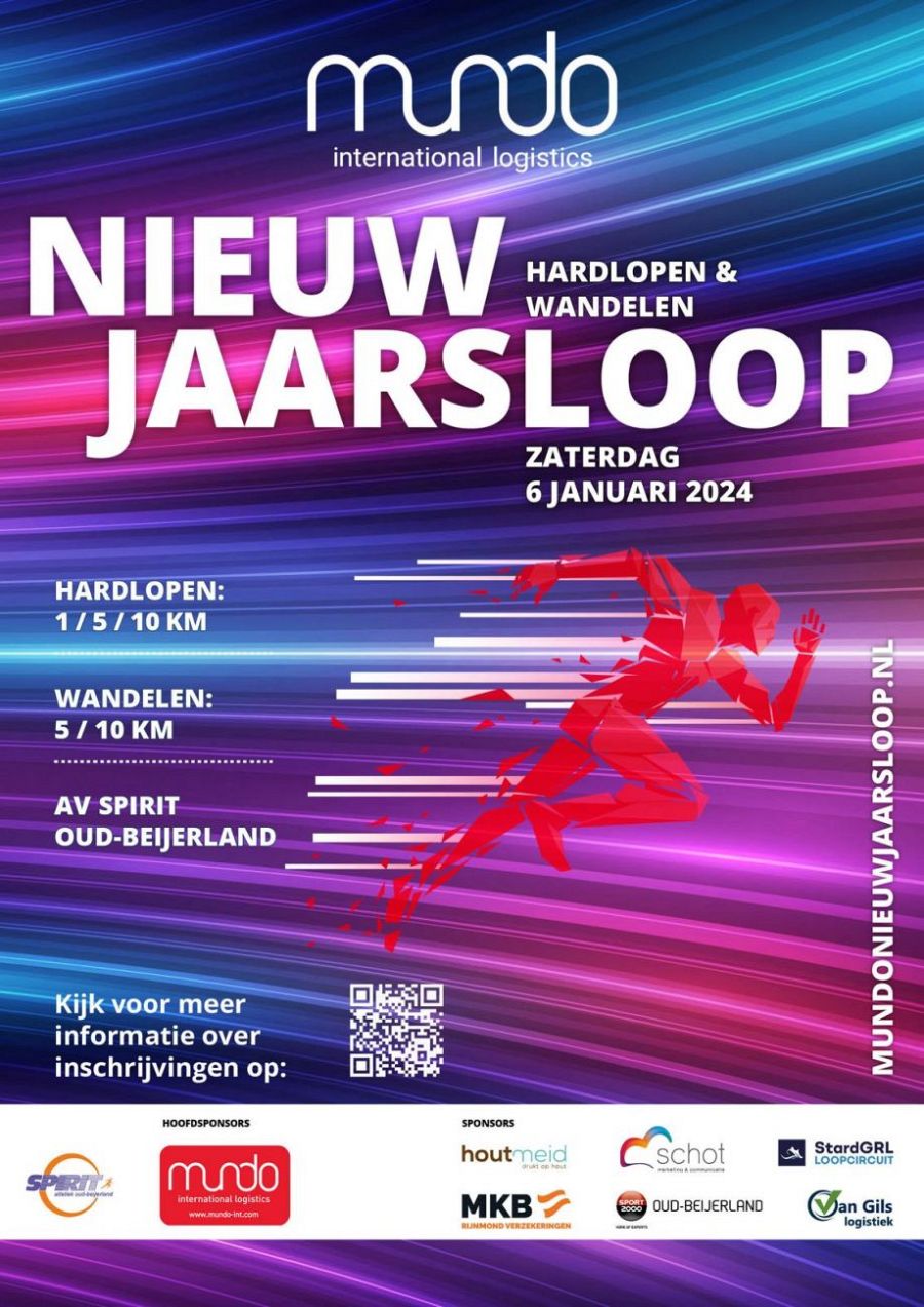 OUD-BEIJERLAND - Zaterdag 6 januari 2024 is het dan zover, de start van de jaarlijkse Mundo Nieuwjaarsloop in Oud-Beijerland. Er worden meer dan 350 deelnemers verwacht op het eerste loopje in het nieuwe jaar met een door de KNAU gecertificeerd 10KM parcours.Dit jaar is de MundoNieuwjaarsloop ook onderdeel van het STARDGRL grote rivieren loop en wij hebben de primeur als eerste loop. (www.stardgrl.nl)