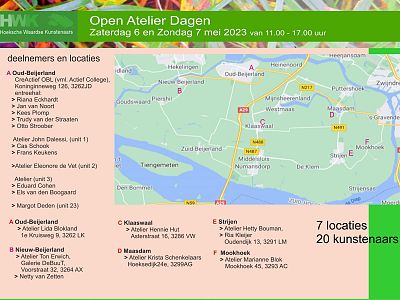 HOEKSCHE WAARD - Op 6 en 7 mei zijn de jaarlijkse Open Ateliers weer te bezoeken. Verschillende locaties in het fraaie landschap van de Hoeksche Waard zijn een ontmoetingsplaats met veelal lokale kunstenaars, professioneel of autodidact, en hun unieke en actuele kunst in al zijn vormen. Er zijn 20 deelnemers op 7 locaties te bezoeken verspreid door de Hoeksche Waard.