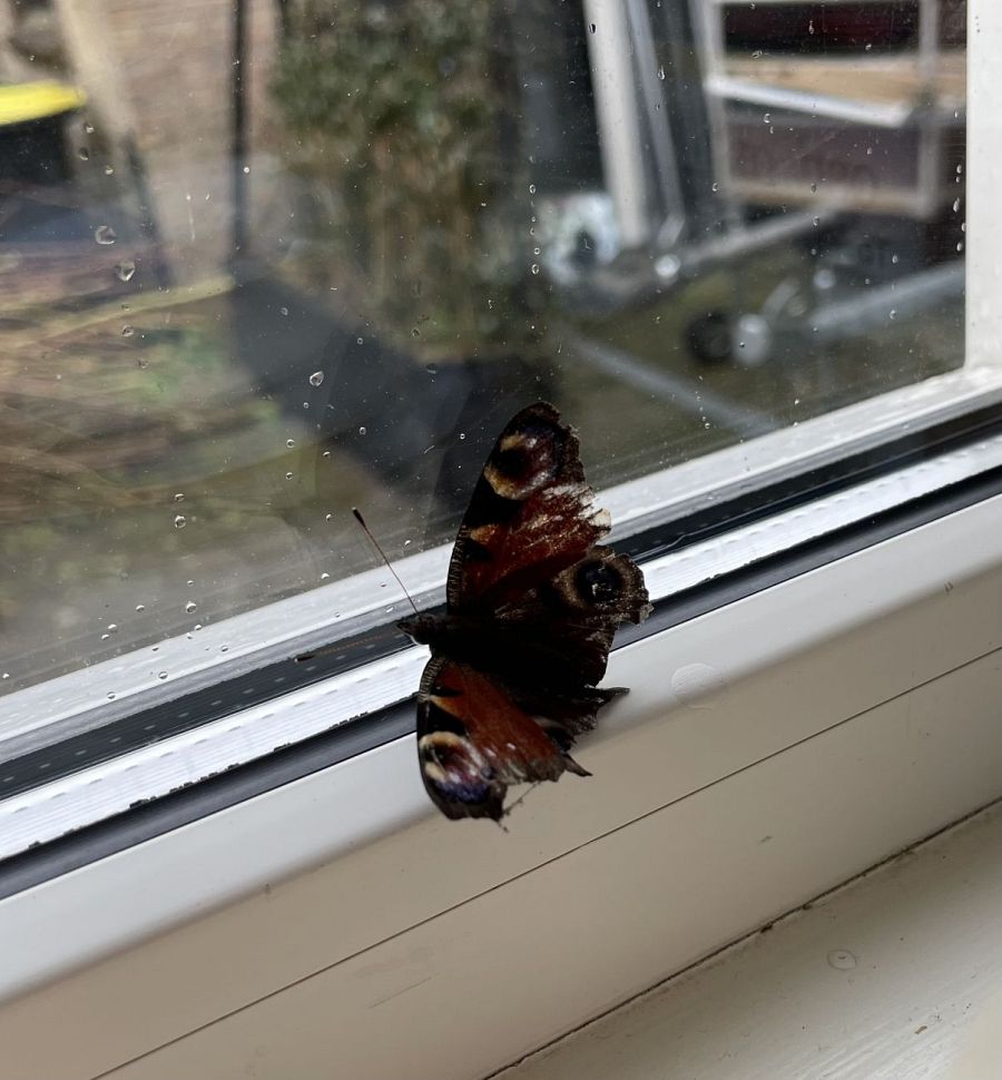 Vanochtend fladderde zij plotseling door de gang en landde in de vensterbank van het keukenraam. Uitgerekend op deze sombere regenachtige dag volgde zij de roep van de natuur om te ontwaken. ‘Je had beter wat langer kunnen slapen, meisje’, mompelde ik. Maar ja, dagpauwogen zijn bijdehandjes. Staan altijd als eerste in de rij om uit te vliegen.