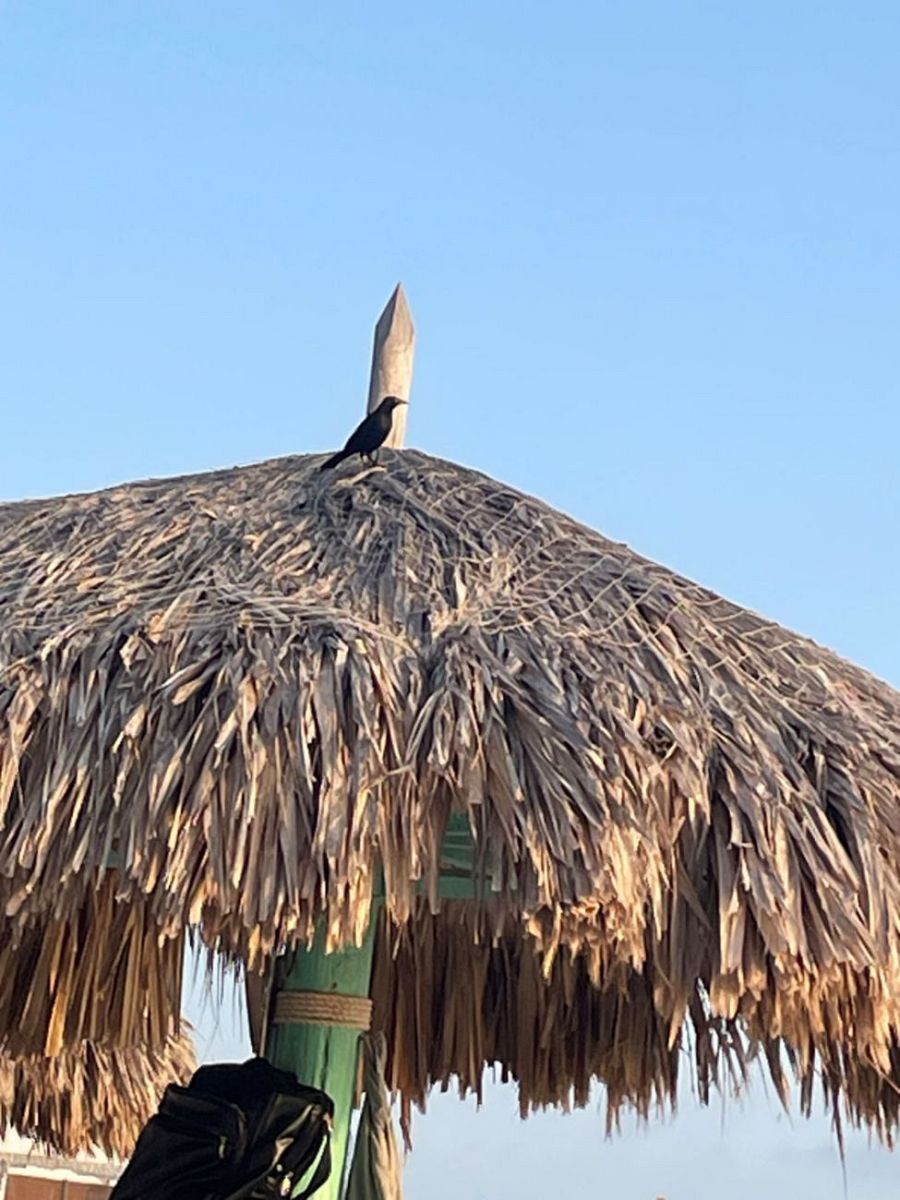 Zij knikt en luistert geduldig. Op het kalkterras roept een Caribische Troepiaal dwingend zijn vrouwtje. Met fladderende vleugels en een hoop kabaal dirigeert hij haar naar de dichtstbijzijnde palapa. Kom op! Hier valt wat te halen voordat we straks de boom ingaan. Zijn gele oogjes houden haar scherp in de gaten. Schiet op doos!