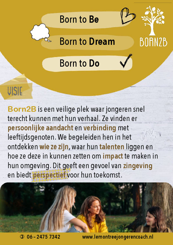 Voor meer informatie, zie: www.LemonTreeJongerencoach.nl/Born2b