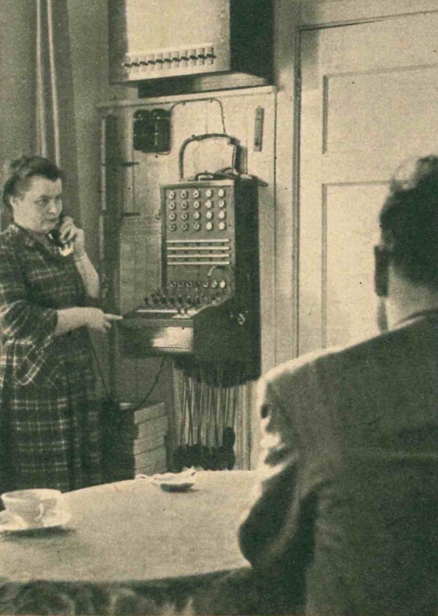 1956: Mevrouw L Bijl bedient de telefooncentrale van Tiengemeten