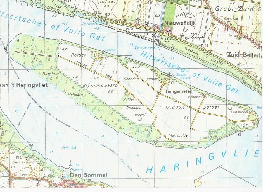 1990: Kaart van Tiengemeten met 11 km asfaltwegen
