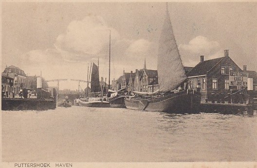 Het is nog vroeg. Van een afstandje kijk ik naar de reeppont, onderweg van Groote Lindt naar Puttershoek, met aan boord wat boeren en paarden bestemd voor de markt.