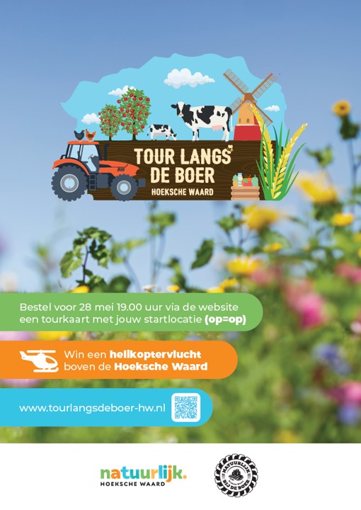 Tour langs de Boer 2025 belooft weer een avontuurlijk dagje uit voor jong en oud te worden.Op Hemelvaartsdag, donderdag 29 mei a.s. zijn juist niet alleen agrarische bedrijven open maar ook molens en museums doen mee. Zo geeft Tour langs de Boer een beeld van het verleden en heden van het boerenleven in de Hoeksche Waard.