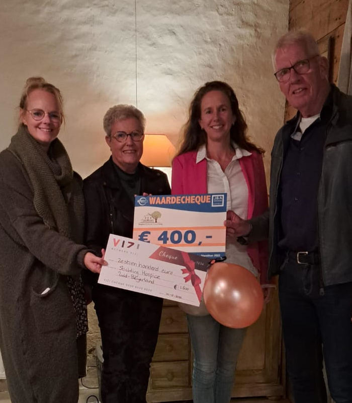 Het spreekt voor zich dat Hospice Hoeksche Waard Zorg blij is met deze mooie cheques, zeker nu de uitbreiding van 4 naar 9 hospice kamers in uitvoering is.