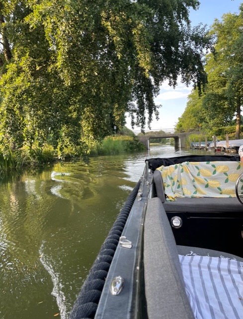 Als we terugvaren, zakt de zon langzaam in de Binnenmaas. Kleindochter bibbert van de kou. Het kleine grut in de boezemvliet schuilt veilig onder moeders vleugels.
