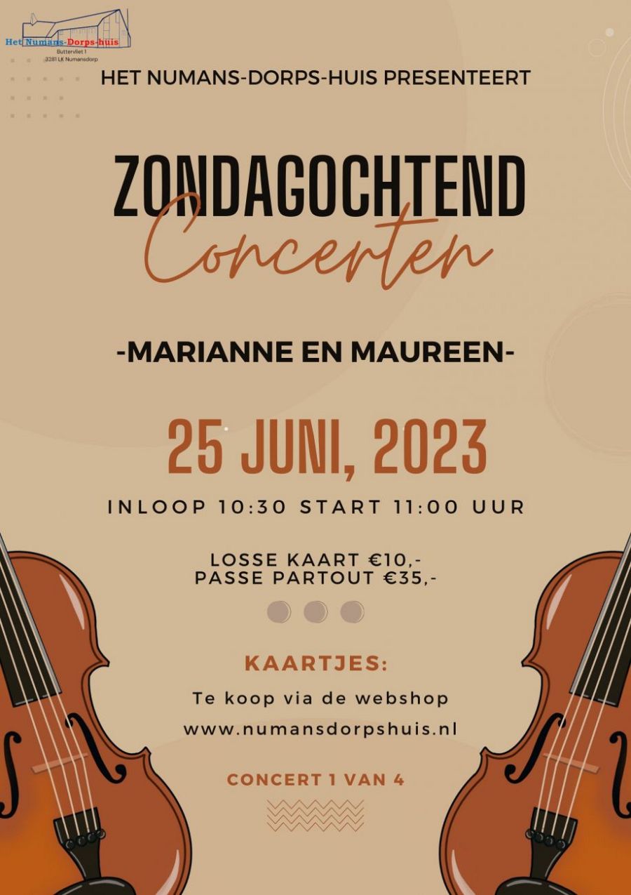 NUMANSDORP - Het Numans-Dorps-huis presenteert een reeks zondagochtendconcerten klassieke muziek. Maureen van IJzerloo en Marianne Hansen zijn een talentvol duo en ze komen a.s. zondag een heel fijn concert geven.Ze hebben elkaar leren kennen tijdens hun opleiding aan het conservatorium van Rotterdam. Samen delen ze een passie voor muziek en hun samenspel is hier een uitdrukking van. Het spel van Marianne en Maureen wordt gekenmerkt door een zeer subtiele en verzorgde aanslag.